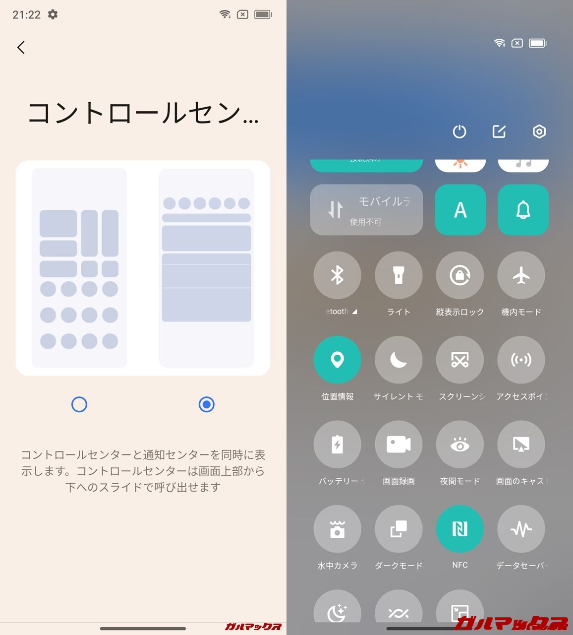このコントロール画面のデザインやアイコン名称を見た感じ、MIUIを結構意識しているっぽいですね。