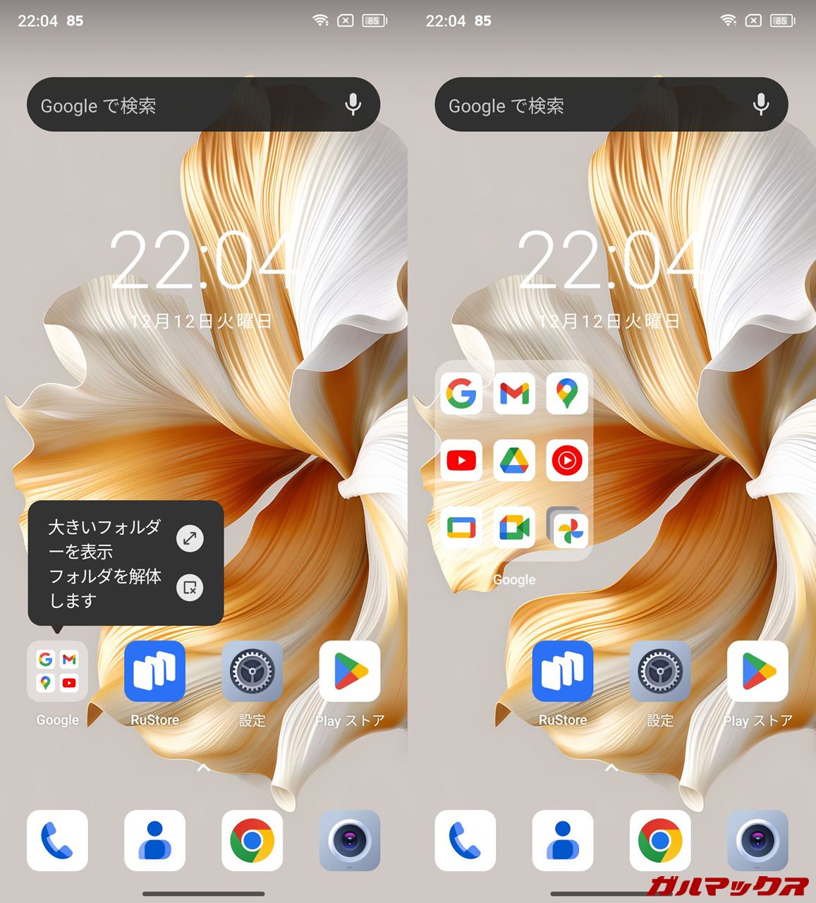 標準Androidにはない便利機能のうち「大型フォルダ機能」に対応!この機能はプリインされてるランチャーの機能ですが、フォルダを大型化することで中身のアプリにアクセスしやすくなるというもの。
