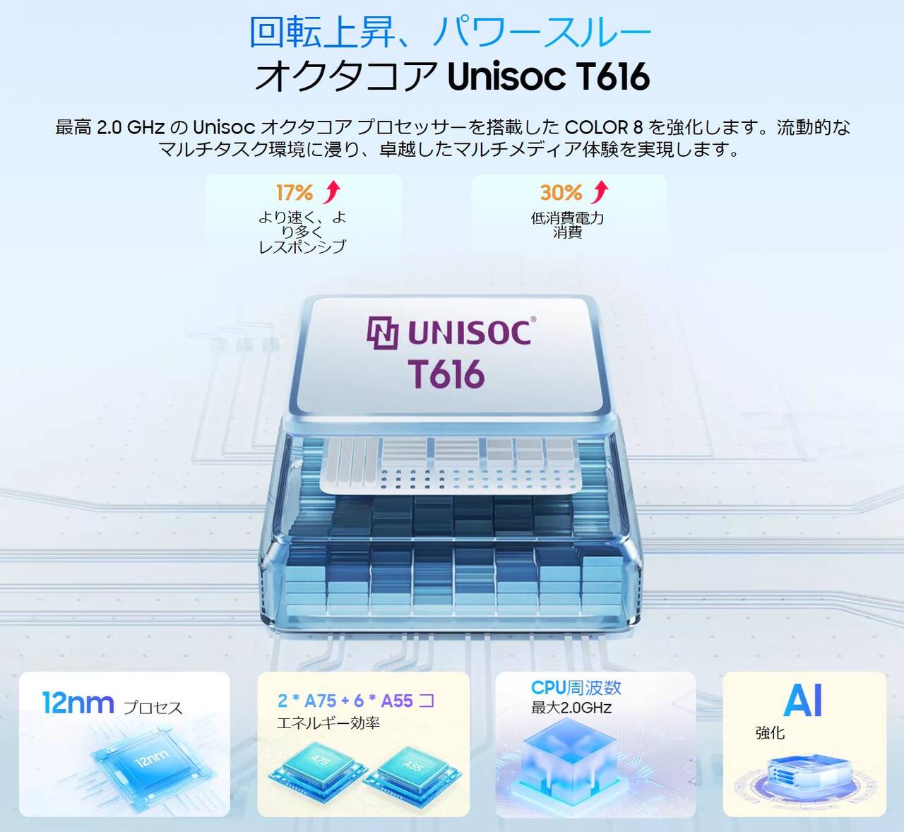 SoCはミドルレンジ下位クラスとなるUnisoc T616で普段使い向けのスペックとなります。残念ながらゲームプレイには向きません、動画からSNSあたりの使い方をメインとするライトユーザーさん向けとなっています。あるいはサブ機向け。