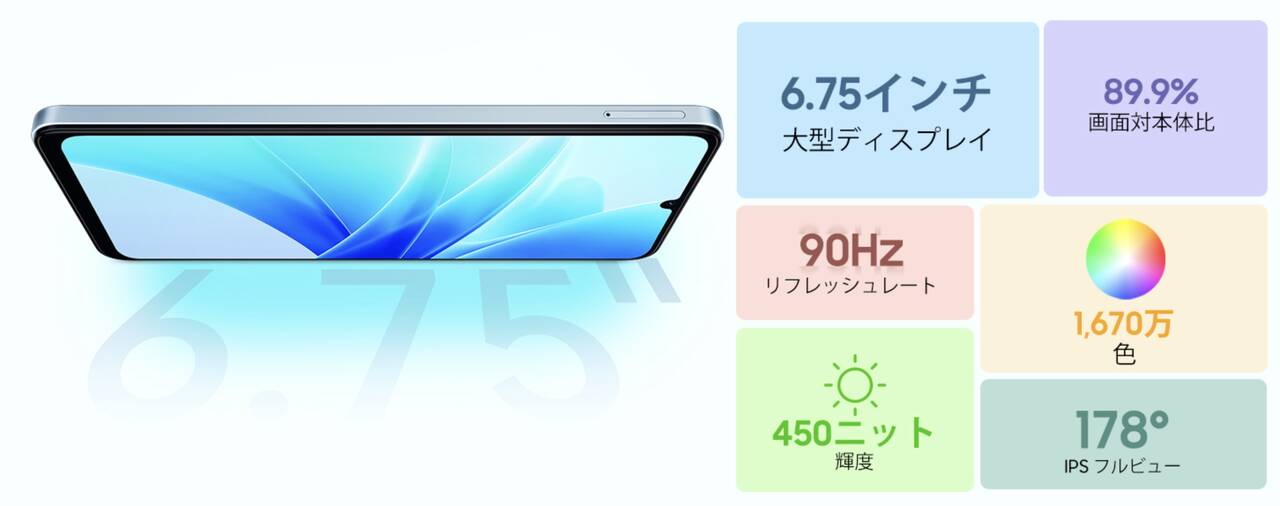 リフレッシュレートは90Hz表示に対応しているのがGood!安価なモデルながらスクロールの滑らかさはありそう。あとはタッチの追従性次第だなぁ。