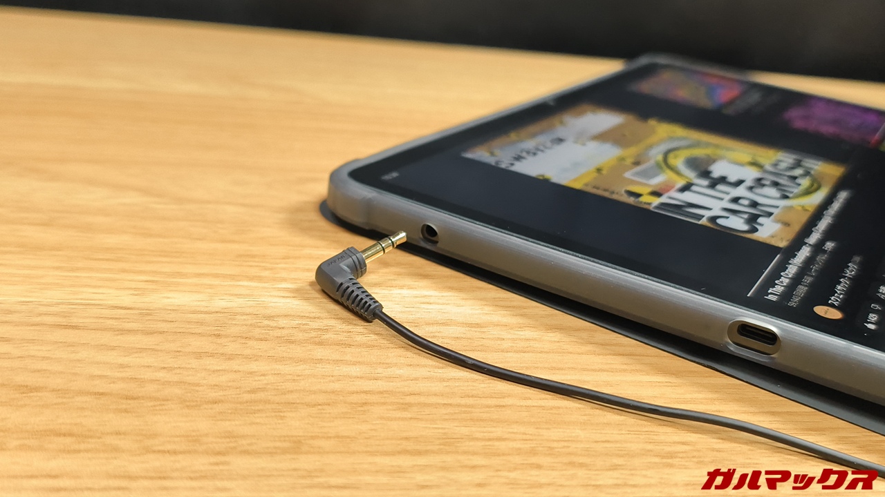 ▼イヤホンジャックを備えているのが救い。筆者はパソコンのスピーカーに出力しているのでそっから音を出してコンテンツ視聴には使えていますが、こういう外部出力のスピーカーやイヤホンがないとツラいっすネ。↓