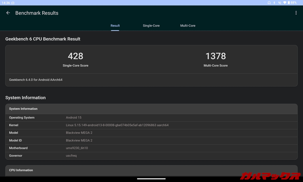 Blackview MEGA 2のスペック・ベンチマーク、検証結果