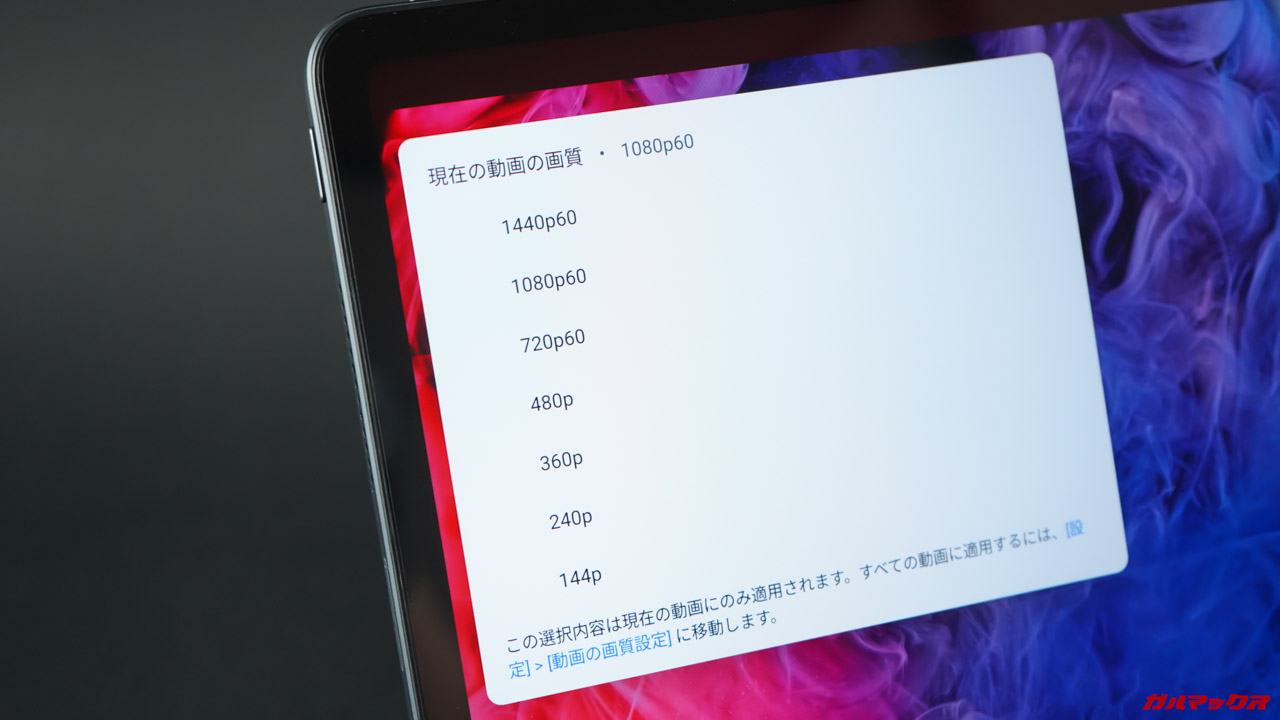 ▼YouTubeは1080pではなくワンランク画質の高い1440pで楽しめるのもGoodでした。↓
