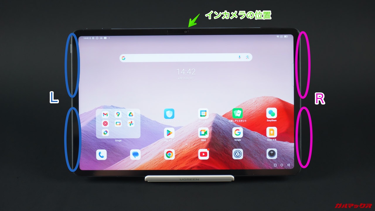Blackview MEGA 3は横持ちした時に左に2つ、右に2つの計4つのスピーカーを搭載。