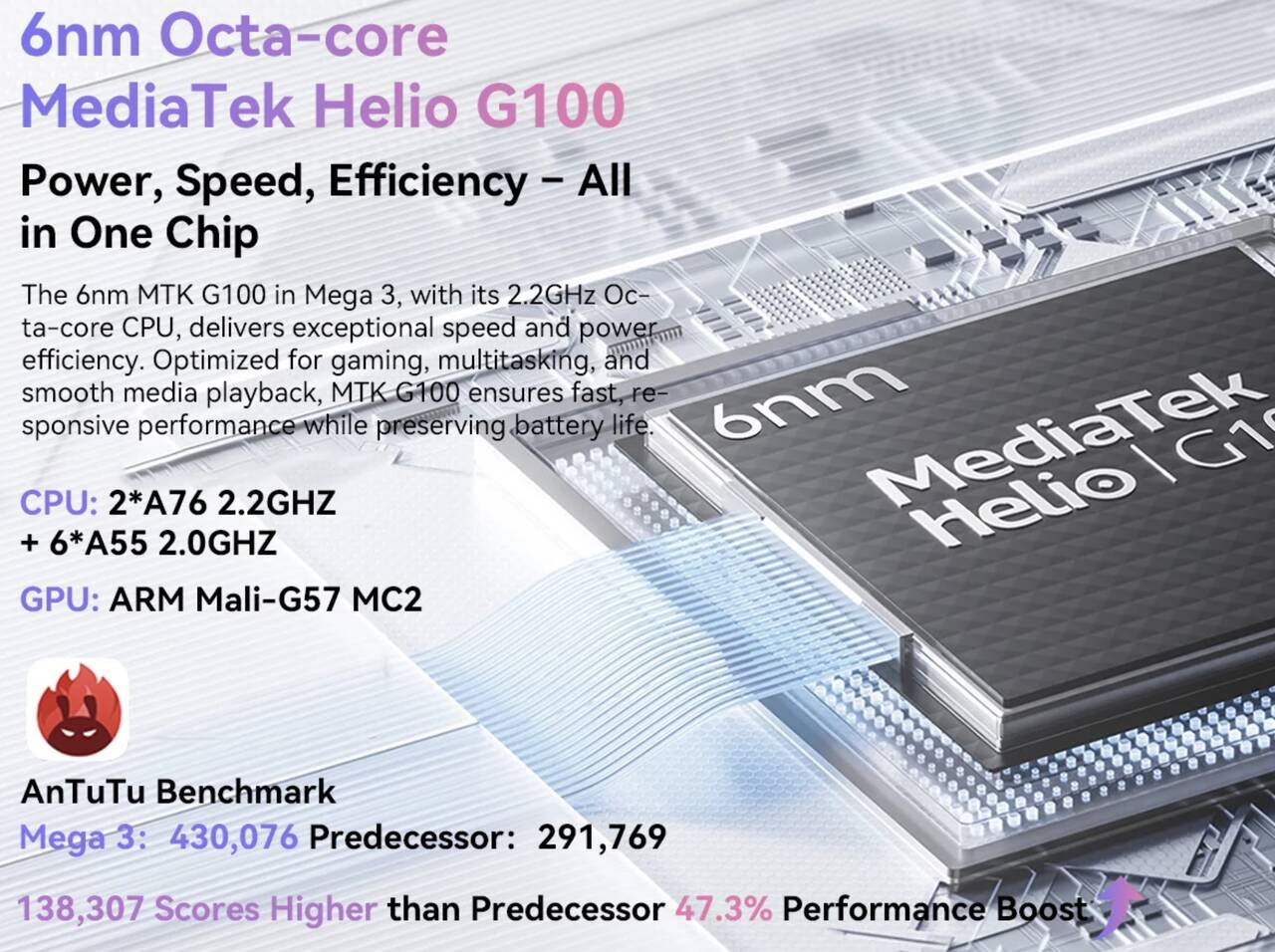- MEGA 3:Helio G100(公称値43万点)