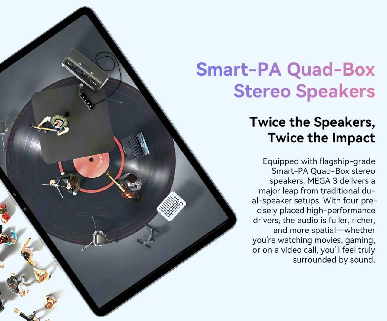 - MEGA 3:4つのスピーカーを搭載するステレオ