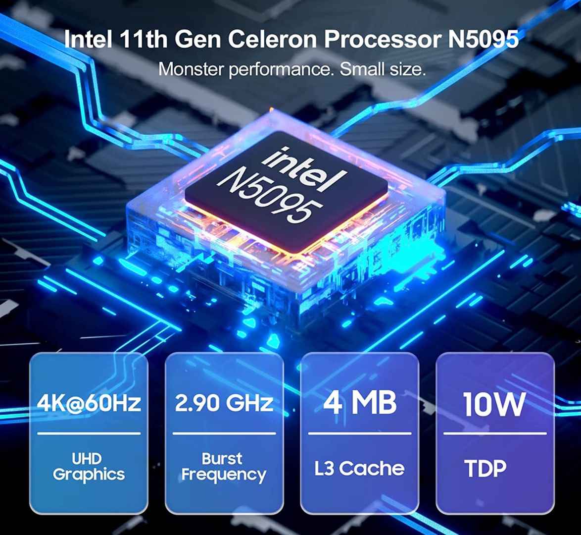 ▼CPUは第11世代のIntel N5095ってやつを搭載してて、所謂廉価シリーズのCPU