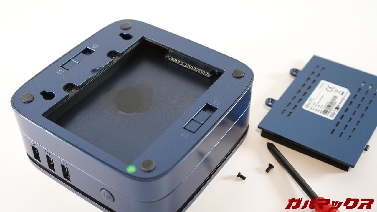 ▼あと拡張性も良くて、2.5インチのストレージを増設可能。しかも裏面の蓋をドライバーで外してそこにはめ込むだけっていう手軽さもGood!デフォルトだと容量が不安な方にも嬉しいポイントといえるでしょう。↓