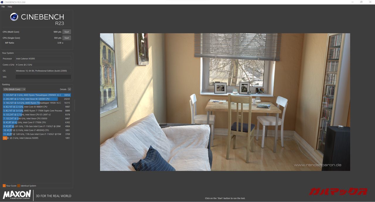 ▼ただ廉価CPUの中では割と動くCPUで、WEBとか記事執筆とか動画視聴とか、そういったライトユースであれば快適!ベンチマーク結果は以下の通り。↓