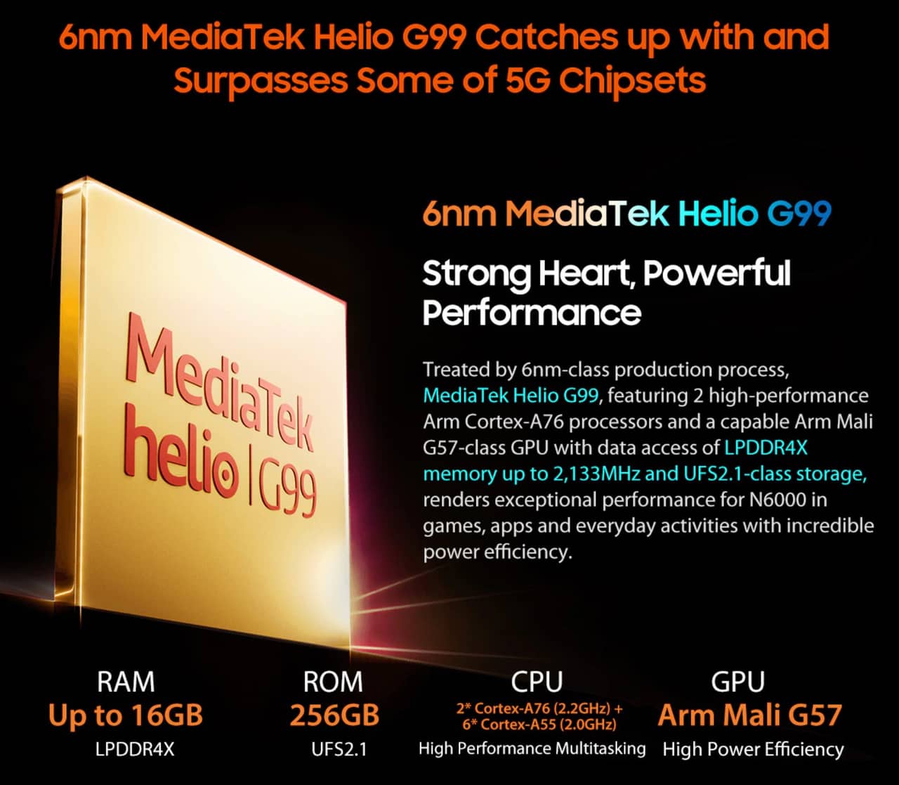 ▼しかも、流行りのハイパフォーマンスなHelio G99を搭載!↓