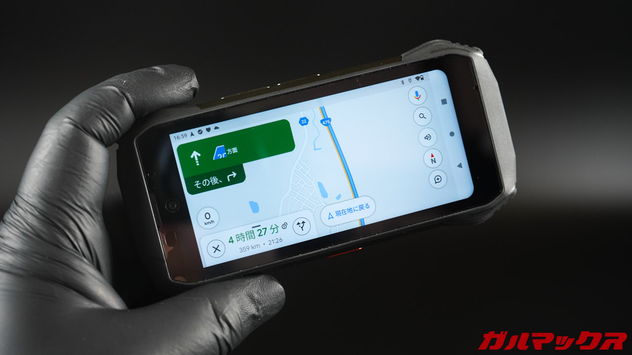 サイズも小さいので邪魔にならないし、防水防塵だから雨にも負けない。タフネス仕様だからある程度温度に対しても耐性があるので、ナビ代わりなら結構使えそう!