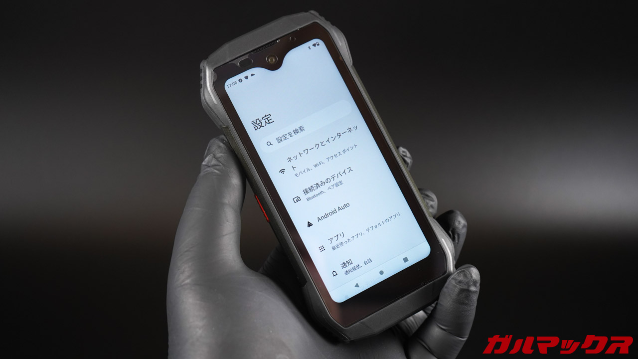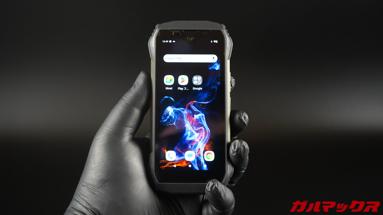 ▼ディスプレイもちゃんとゴリラガラス。画面サイズが小さいからめちゃくちゃノッチがデカく見える。↓