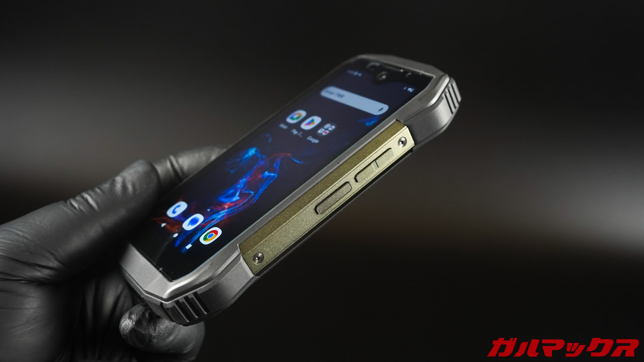 その他、技適もちゃんとついてるし、タフネススマホ御用達のカスタムボタンも搭載。指紋認証もバッチリ対応。よくこんな小さなボディーにギチギチに詰め込んだなと感心しますね。すごい!