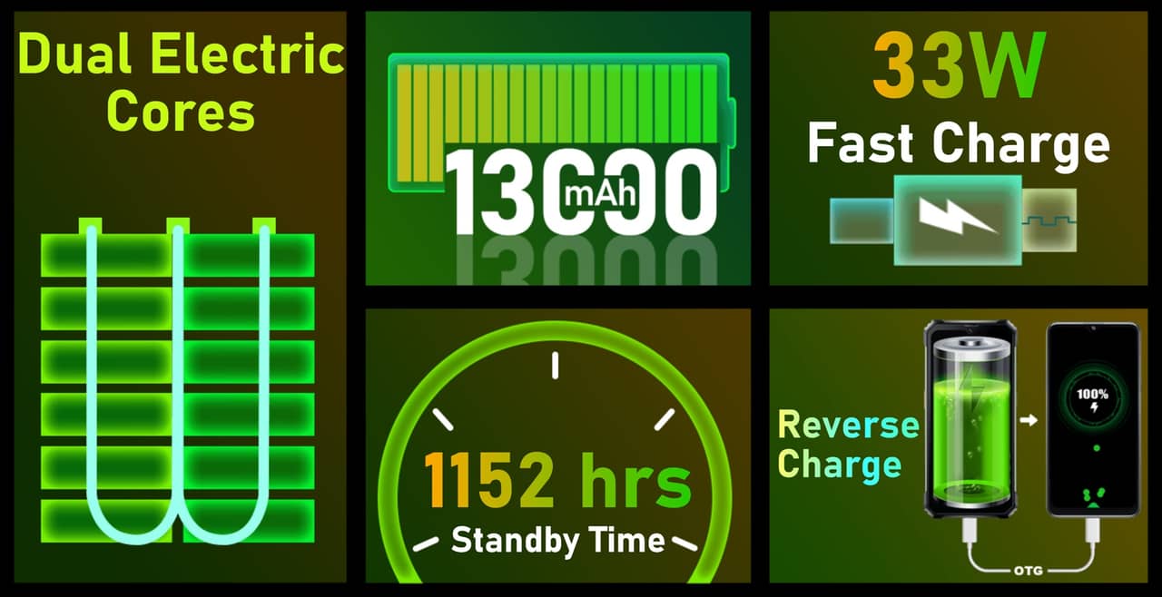 - 13,000mAhの大容量バッテリーで33W充電に対応