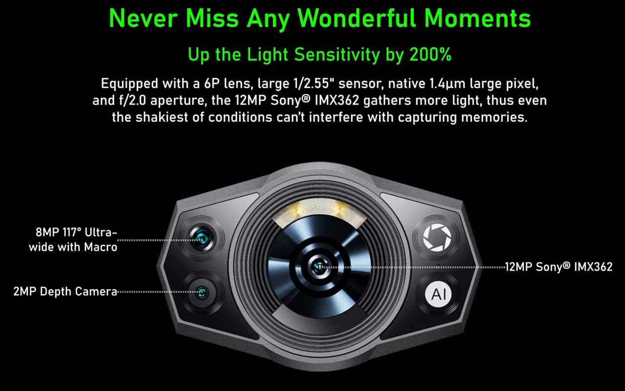 メインカメラはソニー製センサーのIMX362でサイズは1/2.55。超広角カメラは画角117°までの広範囲を撮影でき、風景や狭い場所においての撮影で便利に使えそう!