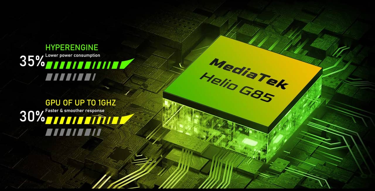 ▼SoCはMediaTekのHelio G85を搭載。AnTuTu公称値は281,229点と、普段使いにおいて不満のないミドルレンジスペックとなっています。↓
