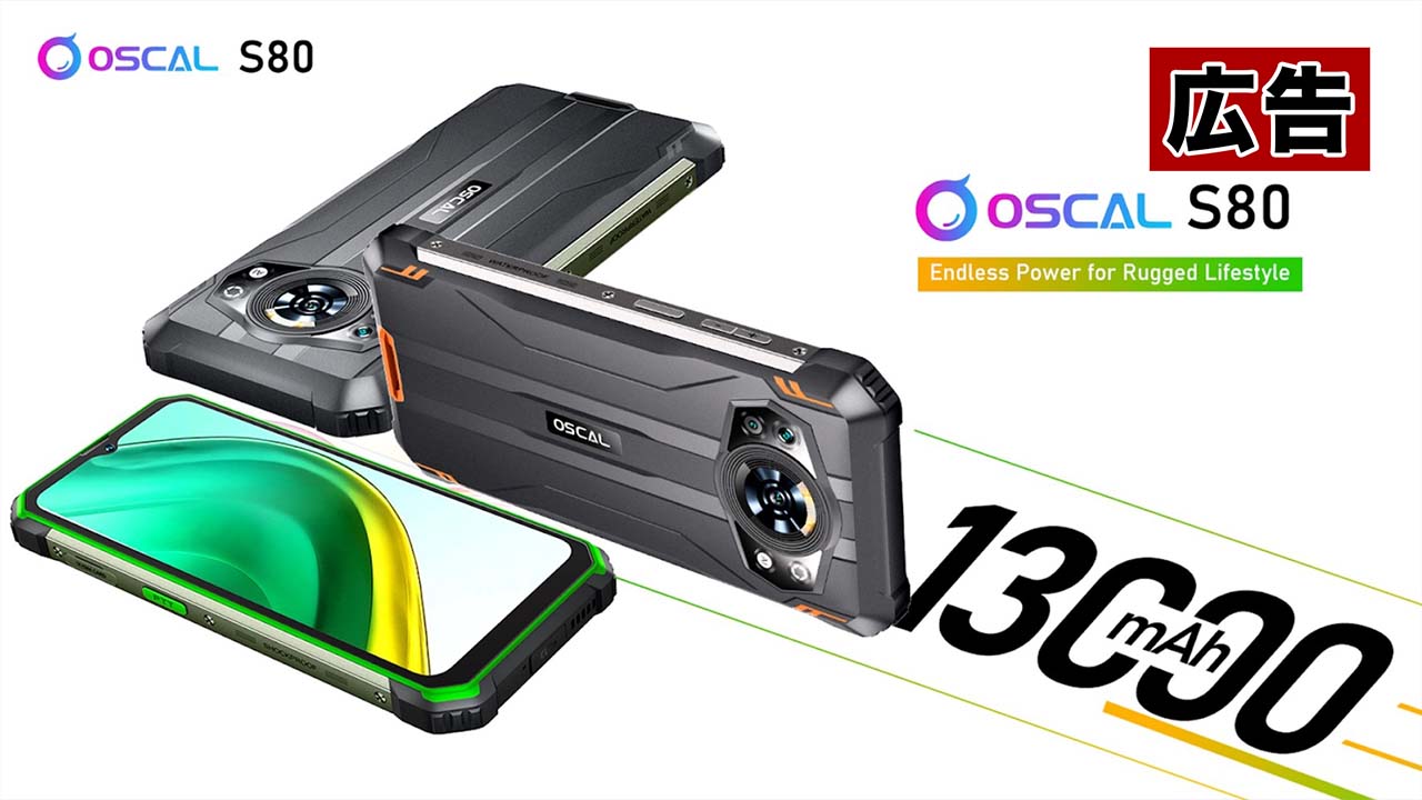 Blackviewが新型スマホ「OSCAL S80」を発表!頑丈なタフネススマホで13,000mAhの大容量バッテリーを搭載!逆充電できるのでモバイルバッテリーとしても活用できるサブ機向けの1台です。