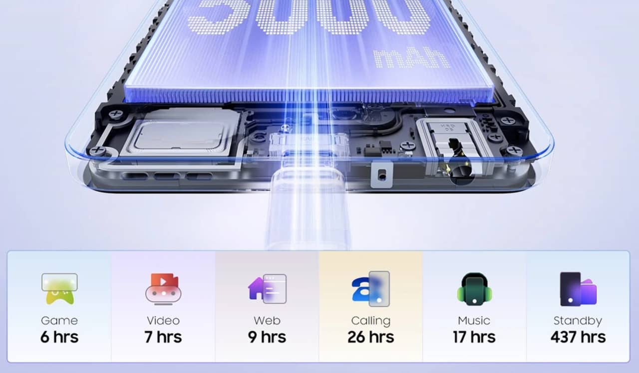 ▼処理性能を決定するSoCはミドルレンジのMediaTek Helio G99を搭載。↓