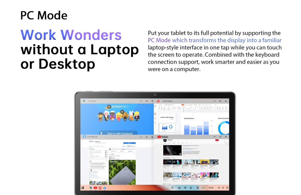 ▼さらにBlackview Tab 13はPCモードが使えるのが魅力です!UIデザインがパソコンライクなものとなっており、またマルチウィンドウも使えるという機能!これは試してみたくなるやつだ!↓
