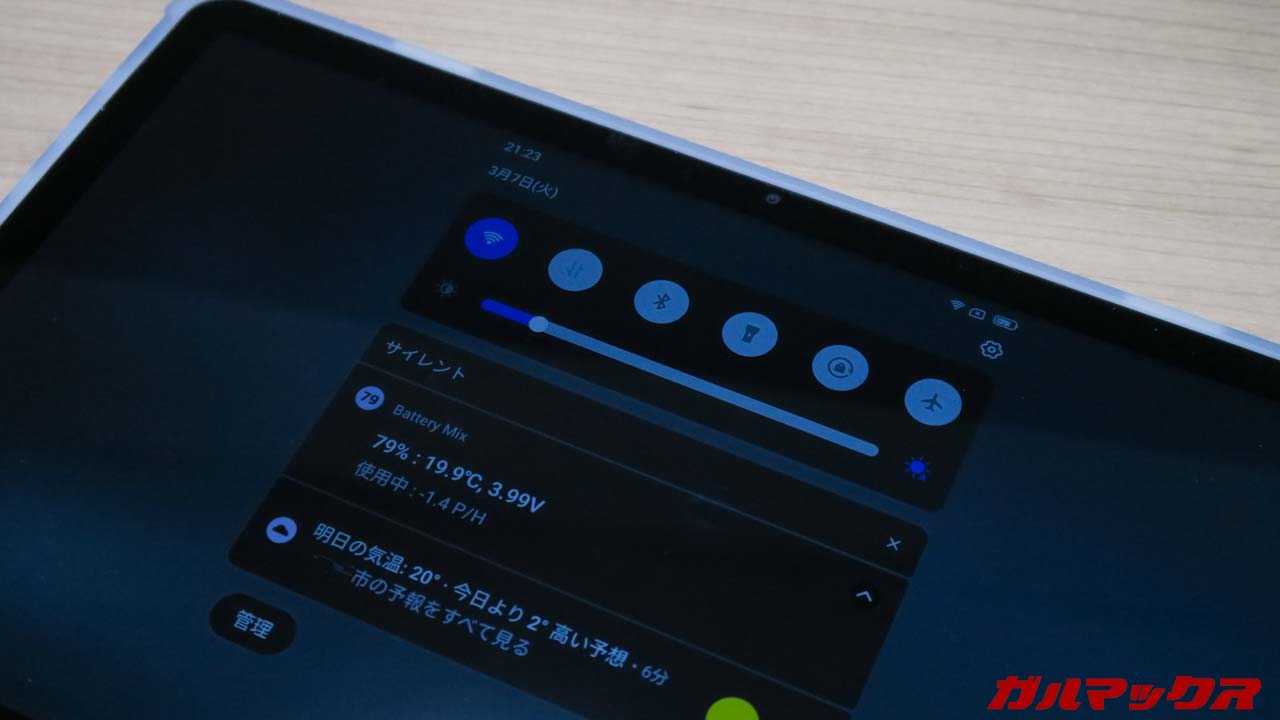▼この調節は手動でスライダーをいじれば学習してくれるモデルもあるんですが、Blackview Tab 16の場合は全然改善の兆しが見られませんでした。アプデでの改善に期待です。↓