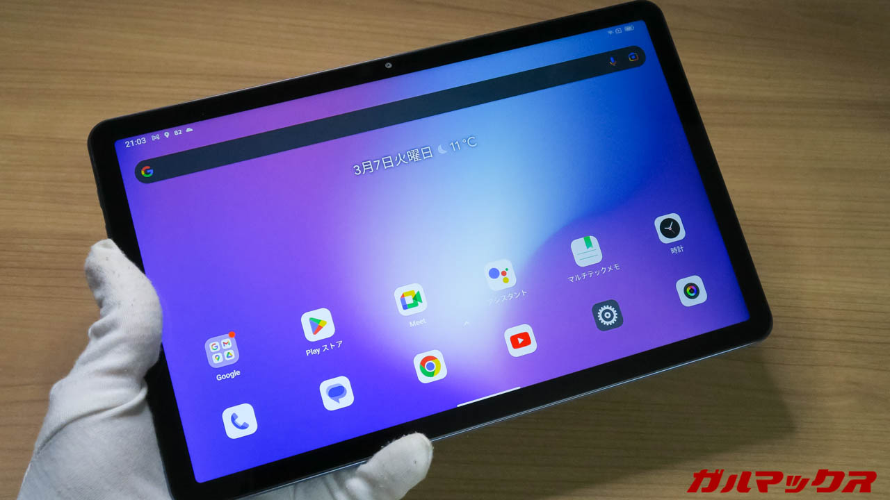 ▼なんかでけーなーって思ったらそれもそのはず、このBlackview Tab 16はディスプレイが11インチもあるんですよね。大抵10.5インチぐらいだったから、若干とはいえデカく感じました。↓
