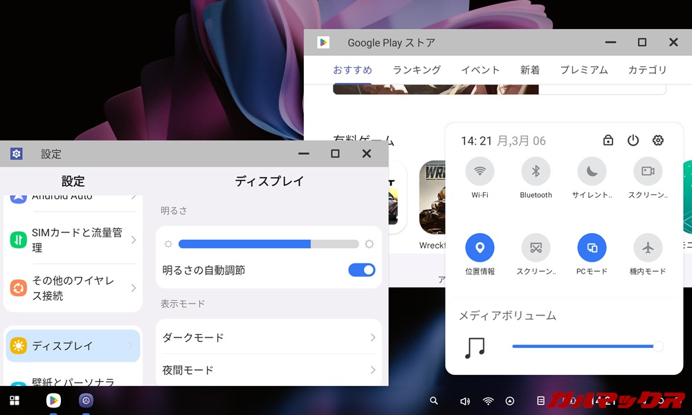 ▼モードを有効にするとこんな感じでマルチウィンドウ状態にすることができ、Windowsっぽい画面に切り替わります。↓