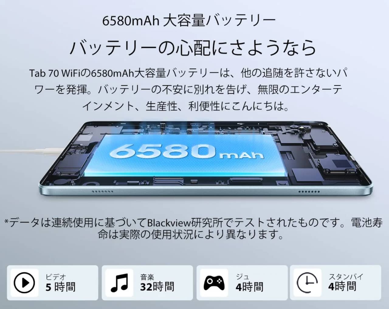 Blackview Tab 70 WiFiのバッテリー・充電仕様