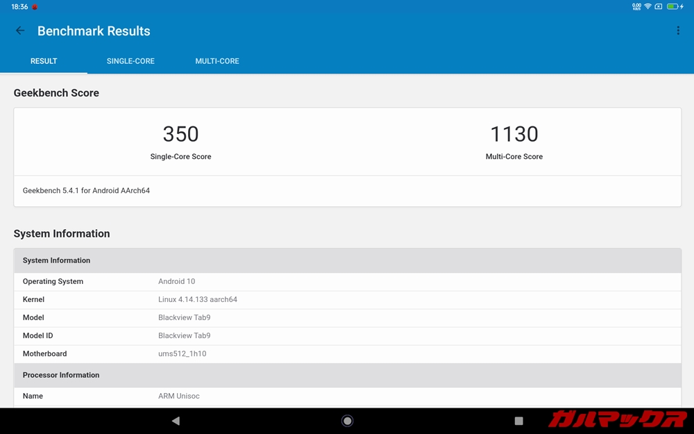 Blackview Tab 9のSoCはUNISOC T610です。端末の処理性能を数値化するベンチマークをチェックしてみましょう。