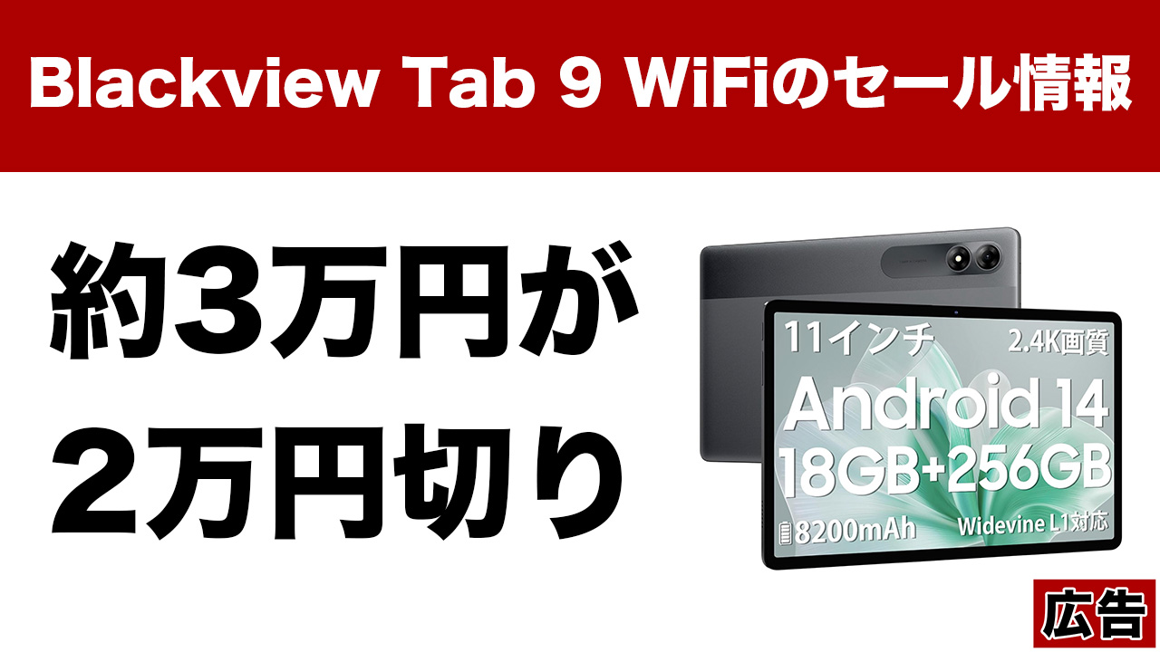 解像度の高くなった11型タブ「Blackview Tab 9 WiFi」が3万円→2万円切りのセール!