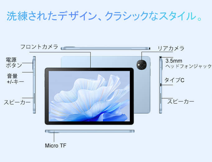 ▼ミドルタブレットとはいえデザインについては悪くはなさそうです。最近のモデルはみんな揃って質感がインフレ化しつつあるんですが、Blackview Tab10 WiFiもそれに習って結構良さげな印象。カラーは3色展開です。↓