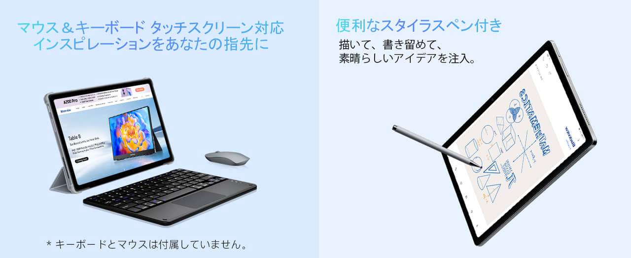 ▼ディスプレイは10.1インチと十分なサイズで最大60hz表示、最大輝度も360ニトとこの点は標準的。しかし解像度は1,280×800と低めなのは惜しい。8インチ台だったらまだしも10インチでこの解像度はドットの粗が気になる可能性は高いかも。↓