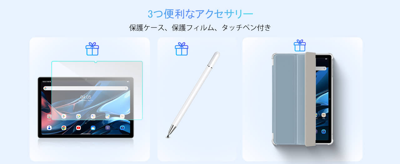 ▼中華メーカー製品って付属品がかなり豪華なんですが、Blackviewはその最もたるメーカーに思えます。デフォルトでフィルム、タッチペン、そして手帳型ケースが付属。特にケース付属は嬉しいんすよね、自立もできますし(`・ω・´)。↓