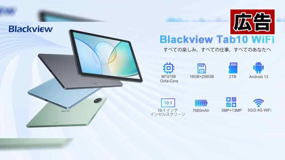 AmazonでBlackview製の10型タブレット「Blackview Tab10 WiFi」が発売!10.1インチ画面を搭載したSoCはMediaTek MT8788搭載のミドルレンジタブレットです。発売セールで1.6万円弱で購入可能。17日までなので欲しい方はお早めに。