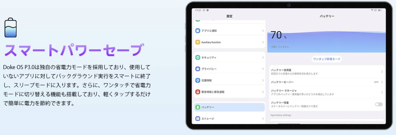 ▼バッテリー容量は6050mAhでスマートパワーセーブにも対応しているのが嬉しいですね!↓