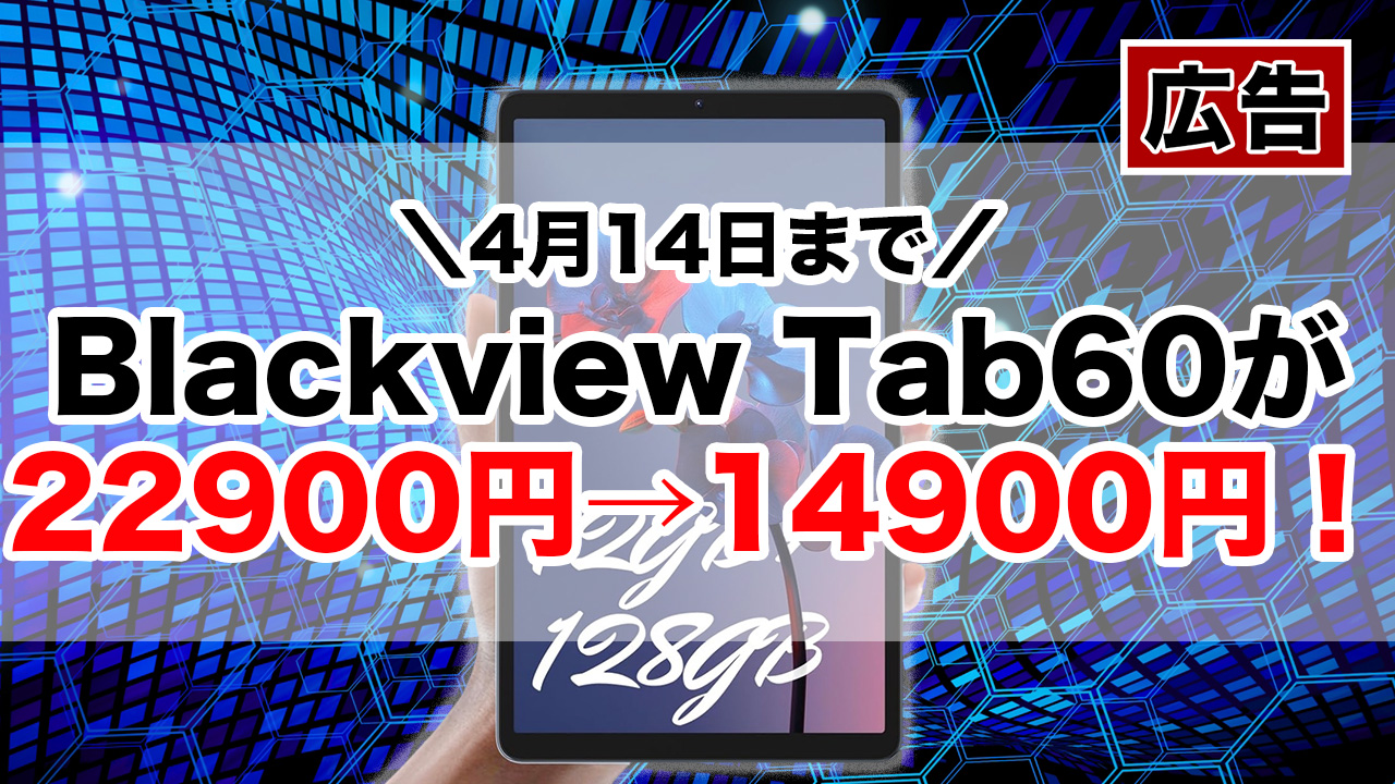 22,900円→14,900円!8.68型タブ「Blackview Tab60」がタイムセール!14日まで