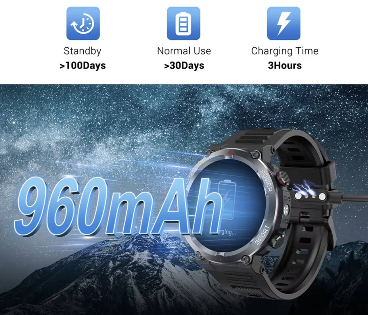 ▼電池持ちもかなりのもの。960mAhとデカいバッテリー搭載のおかげか通常使用で30日とスマートウォッチの中でも最高レベルです。ふつうだと7~14日がほどんどだったんで‥こりゃマジですごい。↓