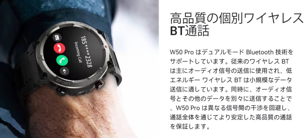 ▼そしてマイクとスピーカーを内蔵しており、Blackview W50 Pro上での通話も対応していますよ!スマホを出さなくても通話ができるので簡単なやり取りなら手軽に済ませられるのも見逃せない魅力。↓