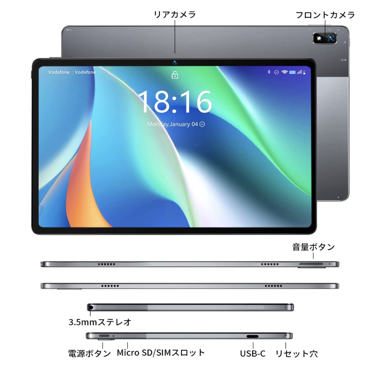 バッテリー容量は6,600mAhを搭載。その他、顔認証に対応するほか、GPSも搭載しているし、4Gにも対応しているので単体通信もOK!なかなか扱いやすそうなタブレットですね!