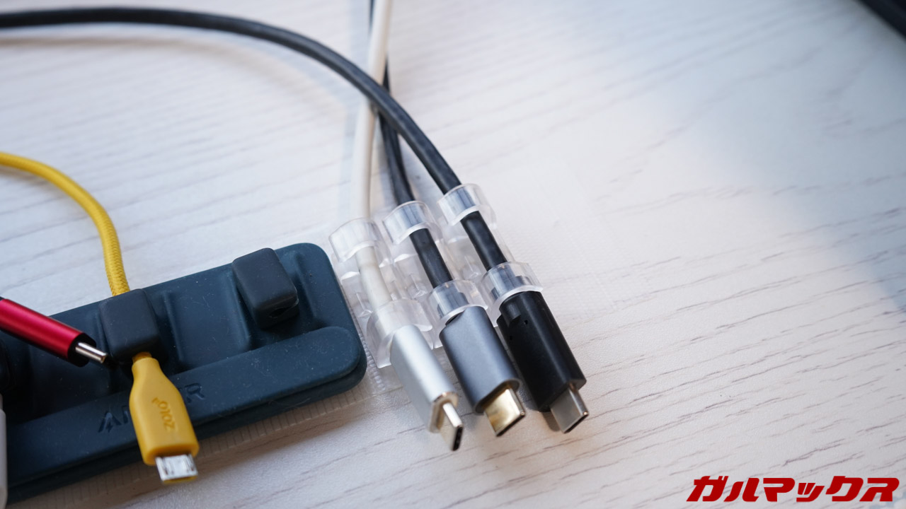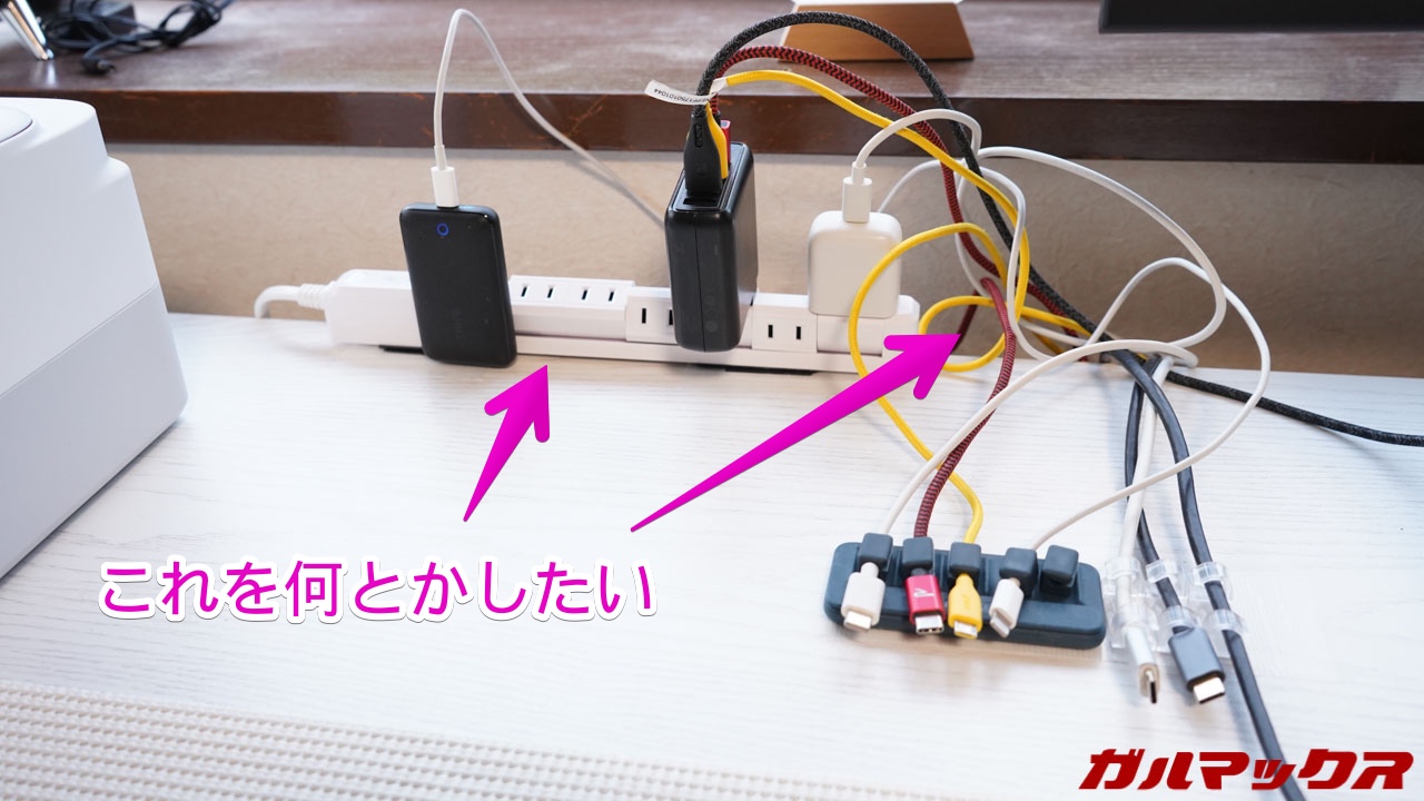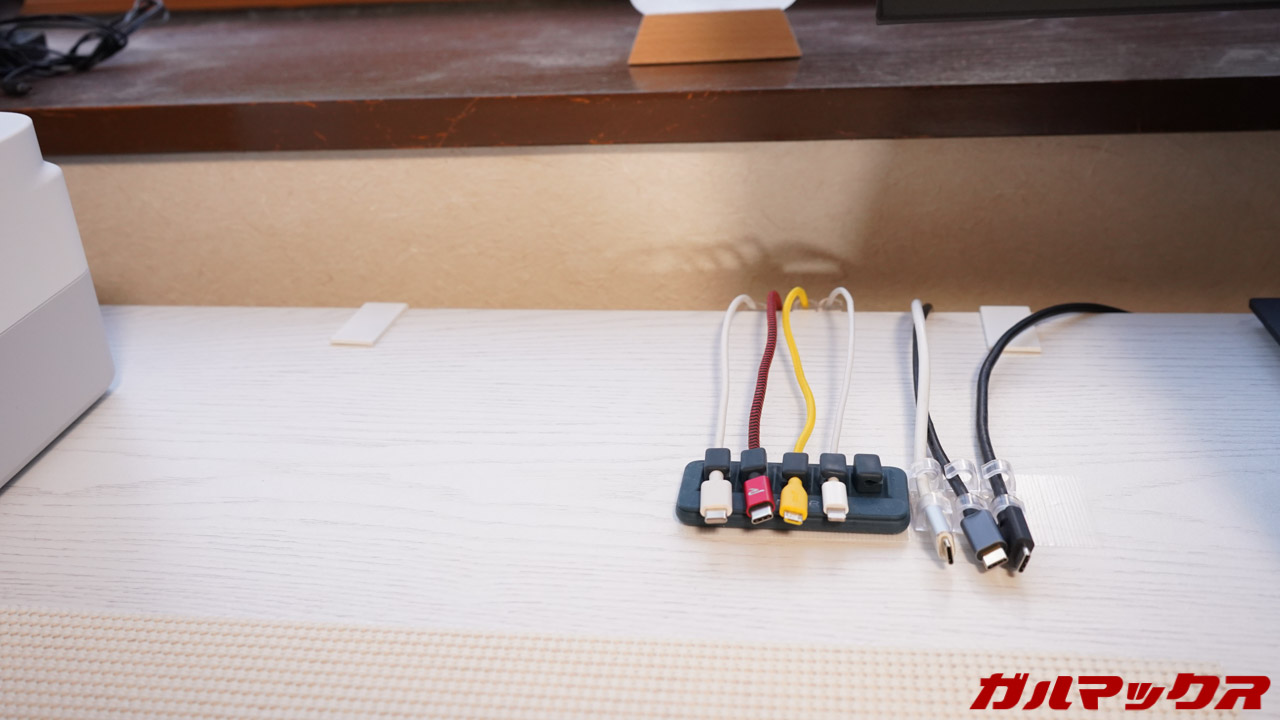 充電ケーブルって結構短いんでデスク上にコンセントタップを置いて使ってみたんですが、これはかなりゴチャゴチャして失敗でした。電源タップやチャージャーは隠してしまうのが良いですね。