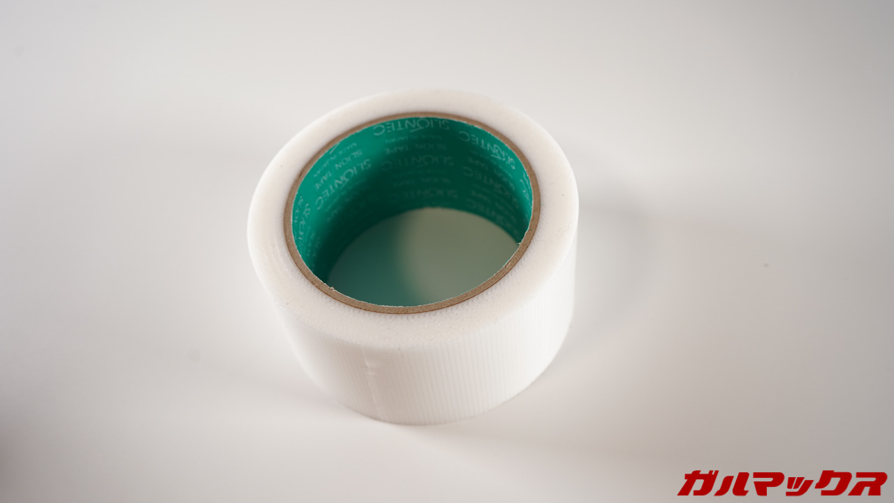 ▼だからいつもの養生テープ登場。これを貼っておくとある程度キズはカバーできます。粘着テープで貼り付けるアイテムも、これ貼った上から貼れば綺麗にはがせます。もっとしっかりキズ対策したいならラバーテープもオススメ。↓