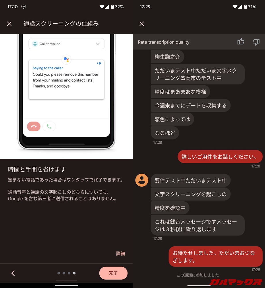 ▼一方、Pixelで実装している通話スクリーニング機能がありますし、通話の文字起こしも一部モデルで対応しているそうなので、こちらを標準として導入してほしいな~とも思います。5月11日に実際どうなるか気になりますね。↓