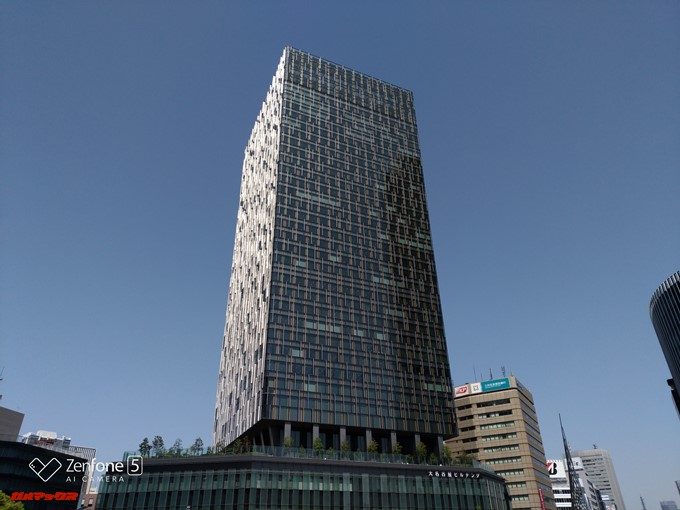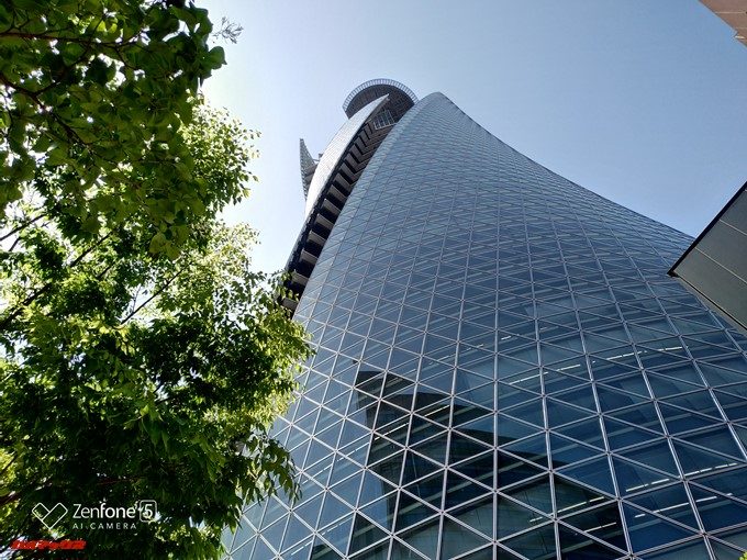 ▼ZenFone 5(ZE620KL)で撮影。ビルと空はナチュラルですが緑の葉っぱは映えています。個人的には一番綺麗に感じた写真に仕上がりました。↓