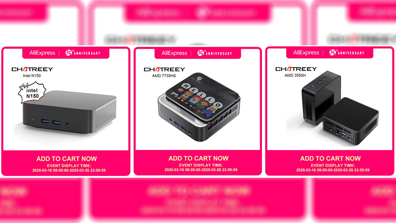 AliExpressの15周年記念セールでChatreey製ミニPCがセール中!3月26日までの開催なのでお見逃しなく!
