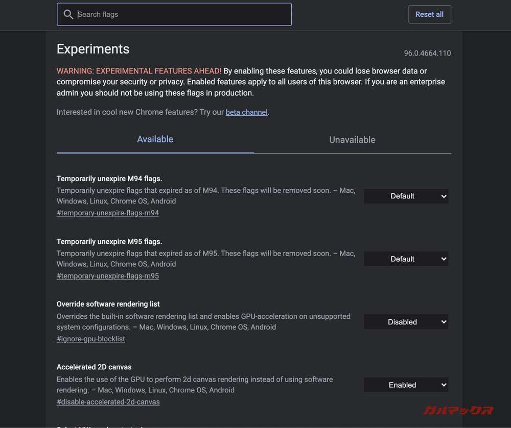 このFlag機能というのは、今後公式に実装するための試験的機能というもの。つまりベータ版の機能といえるものとなります。開発者でなくても、あるいはベータ版のブラウザでなくてもアクセスすれば使えるのが特徴です。