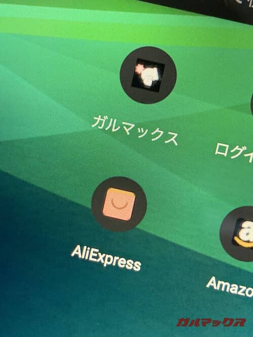 ▼注意点として、アイコンなど一部の画像に白黒反転が適用されることがあり、表示がおかしくなる場合もあります。ガルマックスアイコンは白黒反転し赤の色味も変わり、下のAliExpressアイコンも白い手提げ部分が黒くなってオレンジの色味も変わっています。↓
