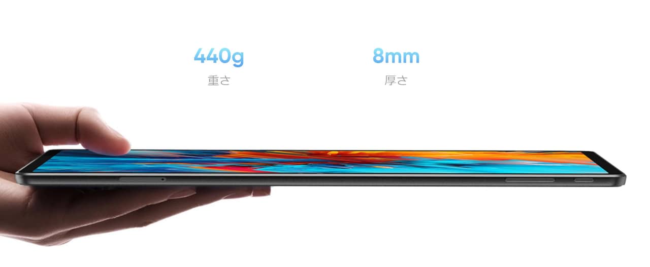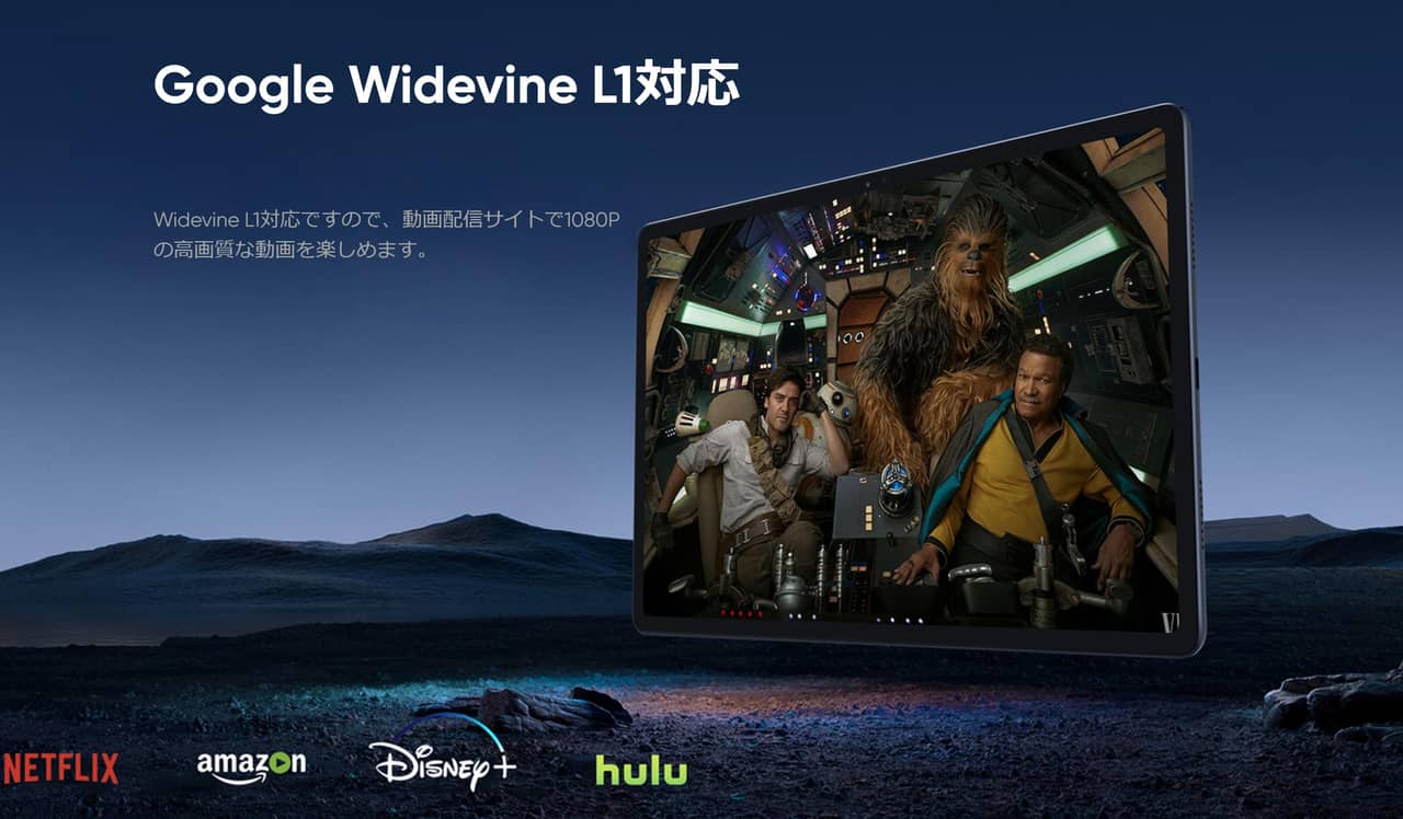 10億色表示対応の10インチディスプレイで4スピーカー搭載でWidevine L1対応なので著作権コンテンツを始めとした動画視聴を楽しんだり、SIM突っ込んで外出先でもバリバリ使いたい場合にも活躍できそうです(`・ω・´)。