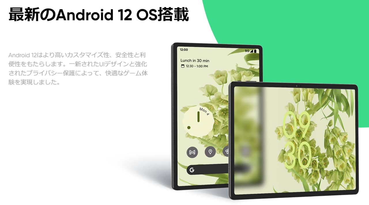 ▼あとCHUWI HiPad MaxはAndroid 12を搭載しているのもGood!最新バージョンゆえにセキュリティ面も期待できますね。この手のタブレットでAndroid 12搭載は結構珍しい。↓
