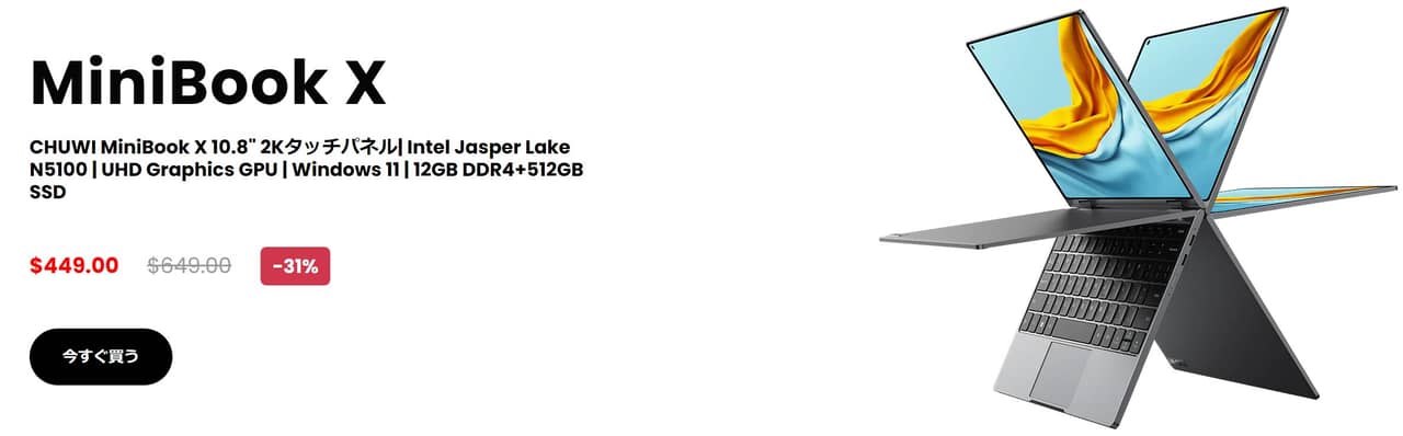 本記事では対象製品とスペック・特徴・セール時価格とそして購入リンクを掲載しています。CHUWI公式のセール会場はこちら!