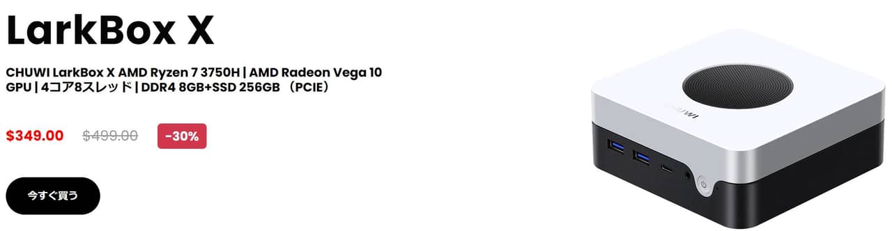 こちらは近代的なデザインのミニPC「LarkBox X」。CPUがRyzen 7 3900U、GPUはRadeon RX Vega 10 Graphicsを採用しているモデル。普段使いで余裕のあるスペックとなっています。