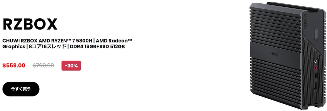 通常価格は799ドルですがセール価格は559ドル(約7.5万円)。定価が10万円ほどでかなりお得になっています。また過去にRZBOXの実機レビューを行っているので、細かく知りたい方はチェックしてみてください!